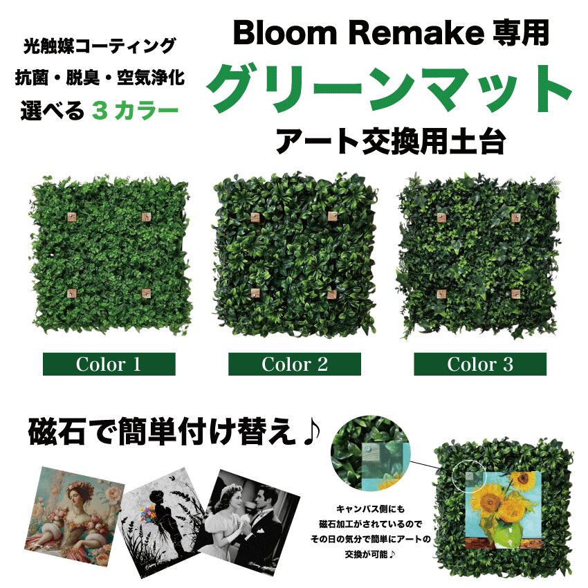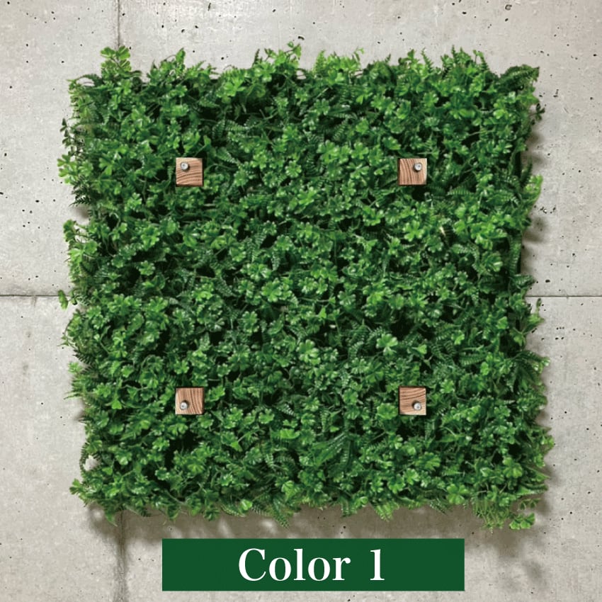 光触媒技術によってコーティングされたこのグリーンパネルは、インテリアに自然の息吹をもたらす優れたアイテムです。100cm×100cmのサイズは、インパクトがあり、一点設置するだけで空間の彩りと演出を表現することができ、自宅やオフィスの壁をグリーンで飾ることができます。デザインはシンプルながらも洗練されており、選べる3カラーからお好きな色をお選びいただけます。